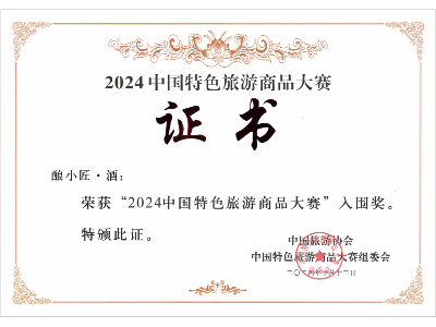 10 月, 2024年中國特色旅游商品大賽——“2024年中國特色旅游商品大賽”入圍獎(釀小匠)